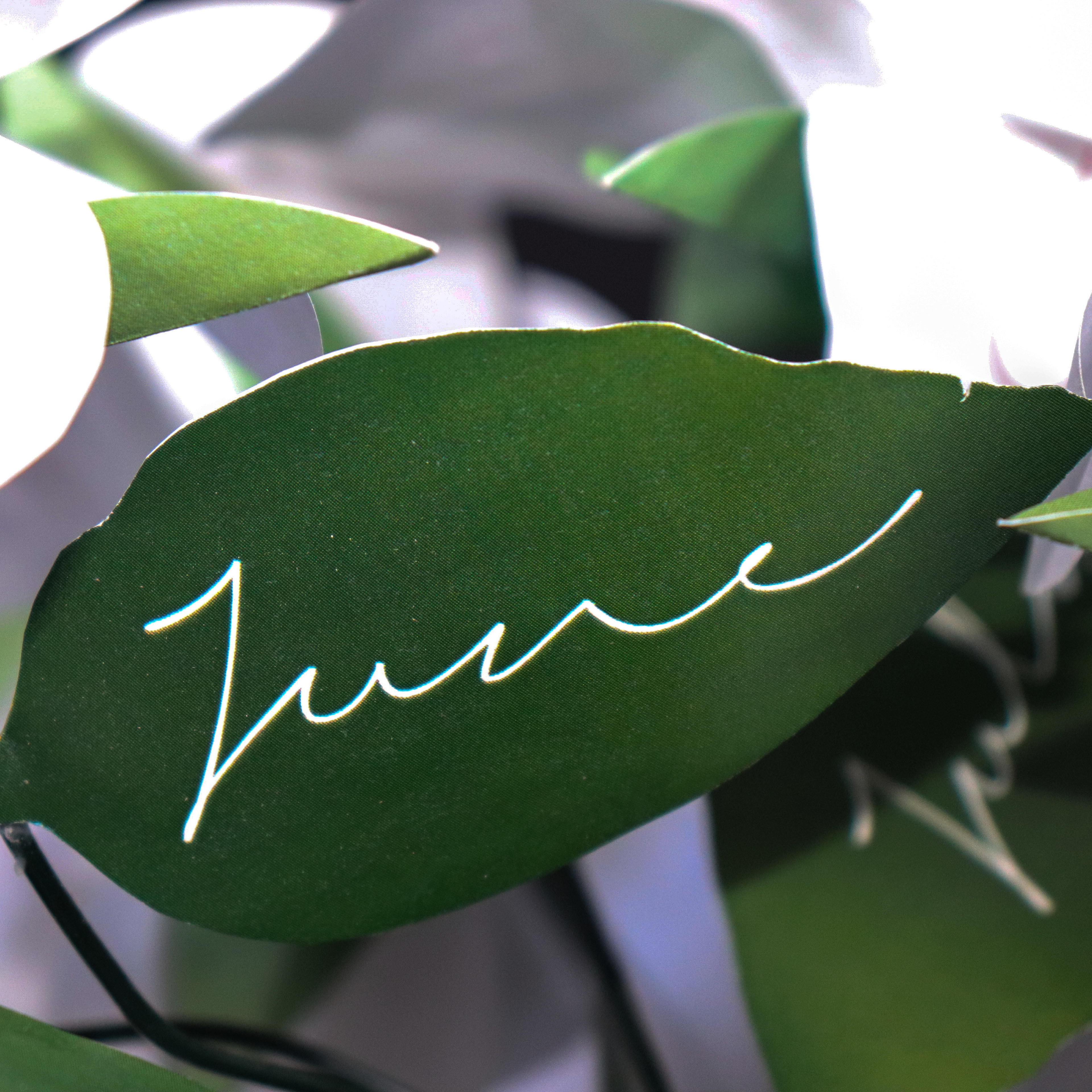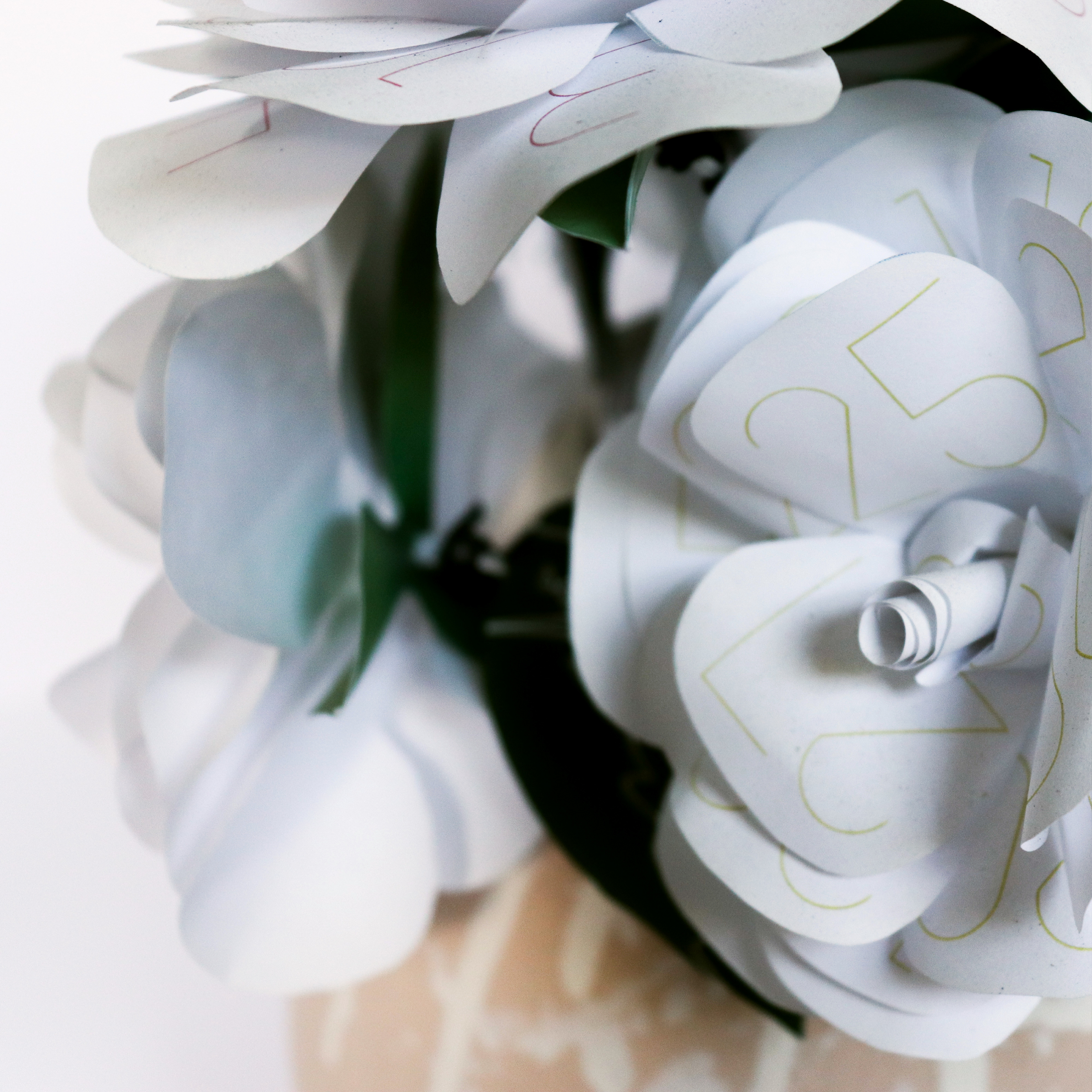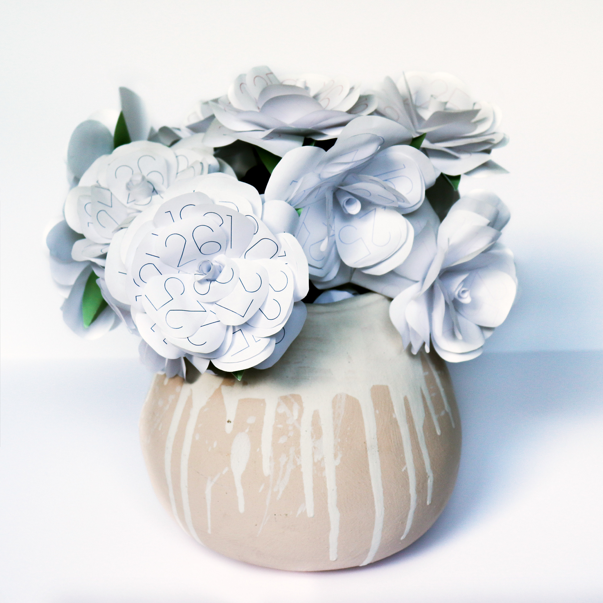 This experimental calendar breaks the traditional grid of most calendars in a whimsical way. It features twelve paper roses, each made up of 365 petals to represent every day in the year. The idea is to pluck off one petal for each passing day. The concept for the calendar was inspired by the childhood game of pulling off flower petals and asking, "he loves me, he loves me not," and a visit to Portland's acclaimed rose garden. The calendar is entirely made by hand.