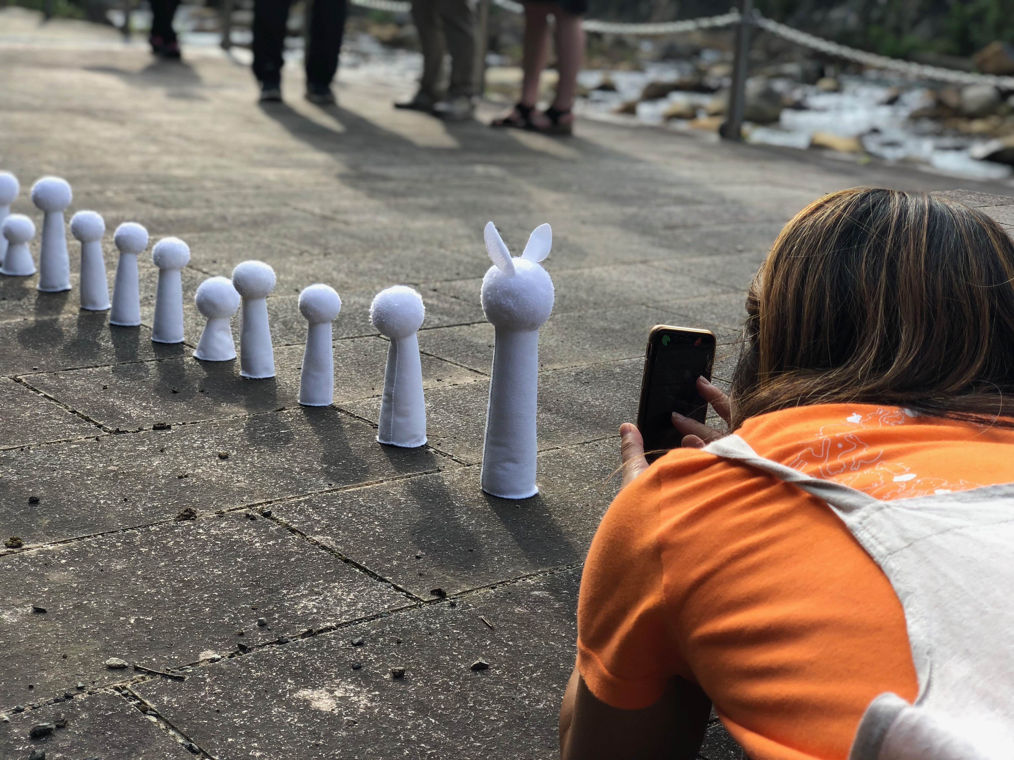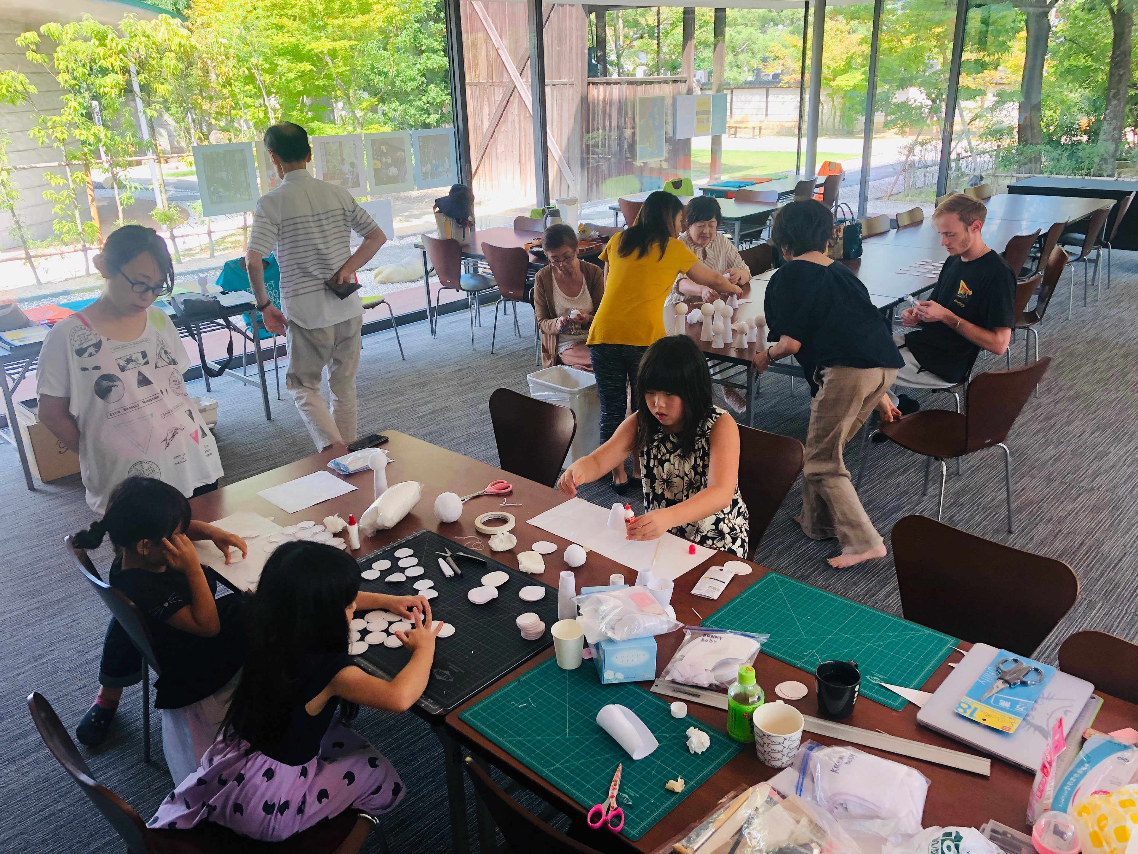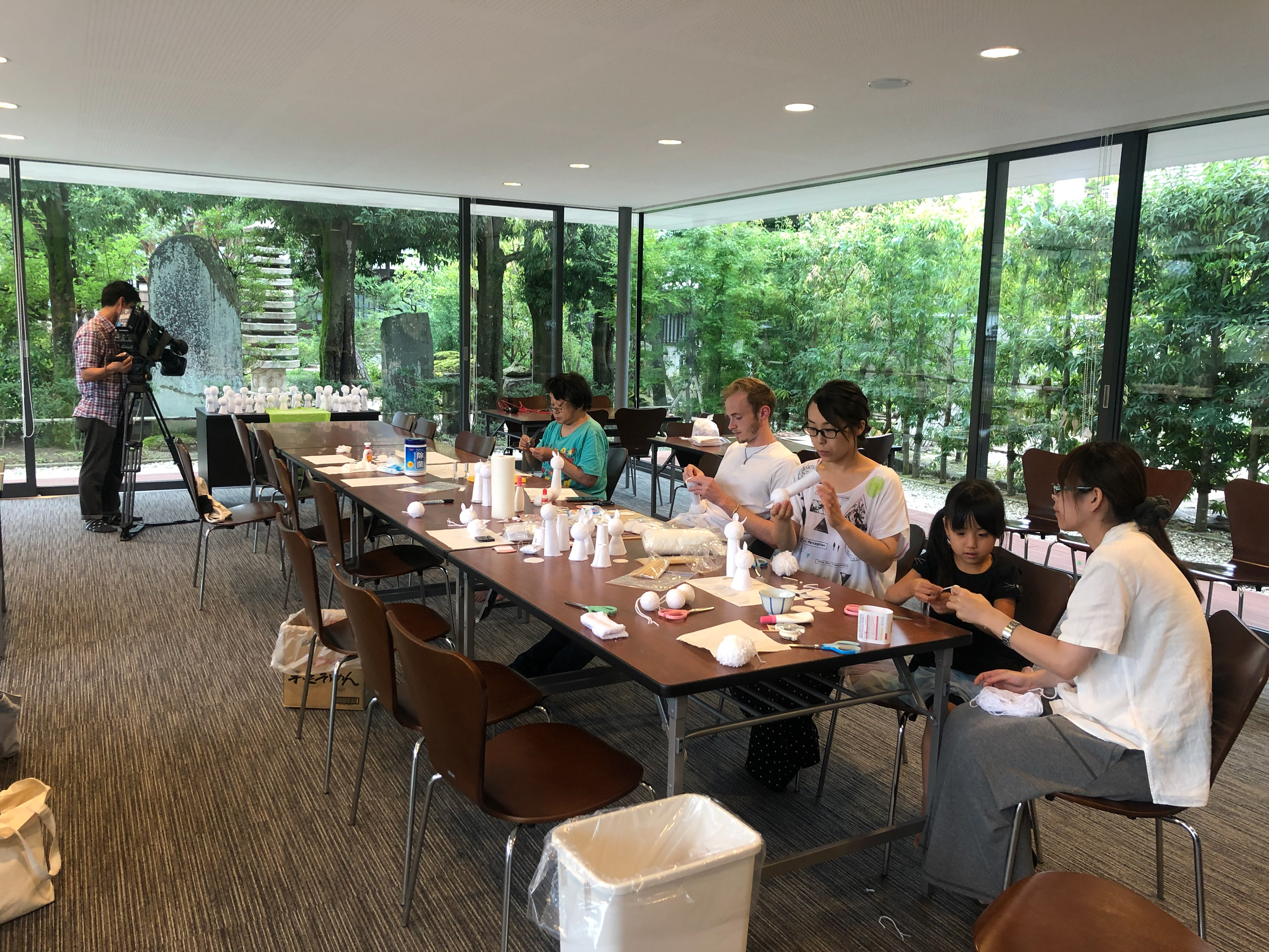 We did not know exactly what we would "make" until we were in Fukushima. Meeting locals and hearing their personal stories about the Daiichi nuclear disaster was very important before deciding anything. We knew we wanted to work in multiples (creating a lot of one thing) and eventually decided to make soft sculptures inspired by the white rabbit and regional kokeshi dolls that people could leave their own "Don't forget..." message on the back seam. We fine tuned the process of making them so even children could help.