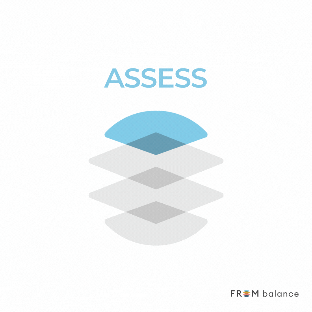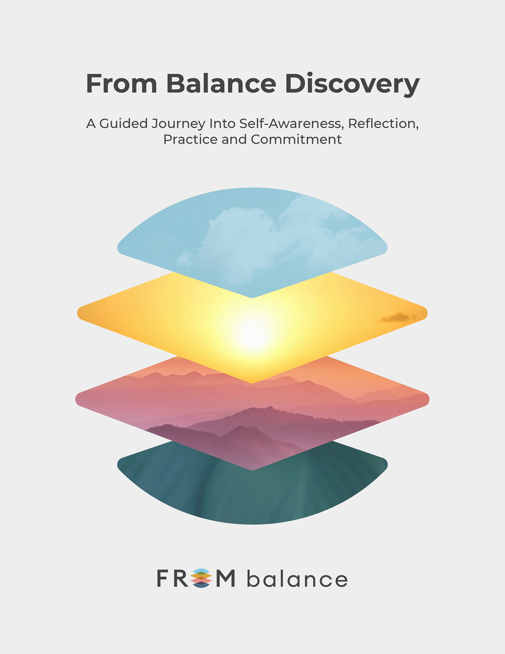 The cover design is minimalistic and rich with layered imagery that closely mirrors the symbol in From Balance's logo and the four key steps they represent.